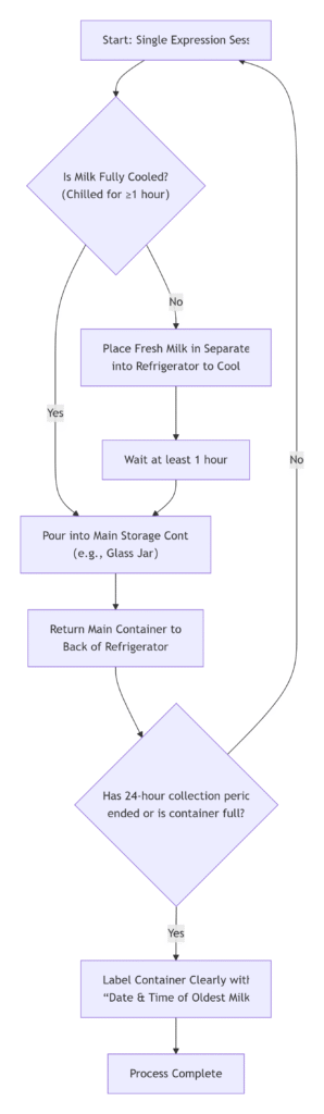 • Chill Before Combining – Always refrigerate freshly expressed milk before adding it to your stored batch.