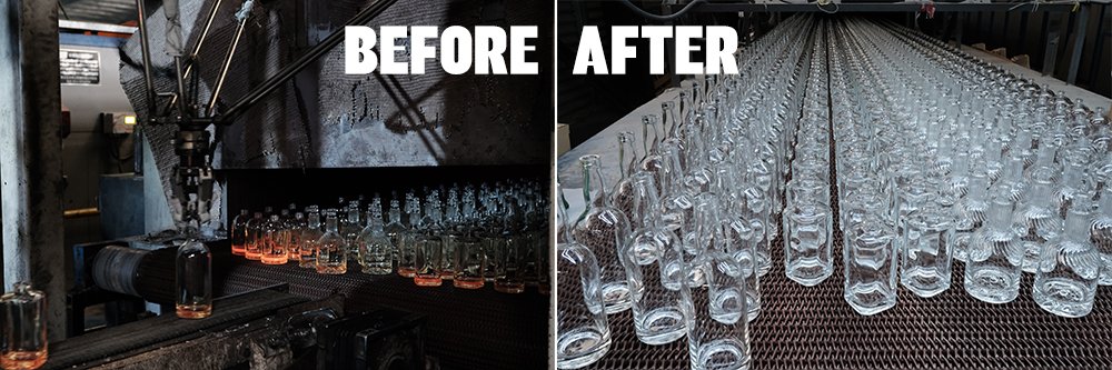 Newly formed jars are hot and contain internal stresses that would make them fragile. To ensure strength and durability, each jar travels through a carefully controlled oven called an annealing lehr.