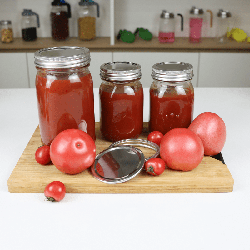 The “split-style” two-piece design features a separate flat lid and band, functioning identically to standard mason jar lids but with vastly superior materials. The flat lid is equipped with a sealing compound for an airtight seal during canning, while the reusable band remains rust-free through washing and storage. Perfect for both commercial canning operations and retail packaging, these lids provide your customers with a reusable, sustainable closure system that protects your brand’s reputation.
