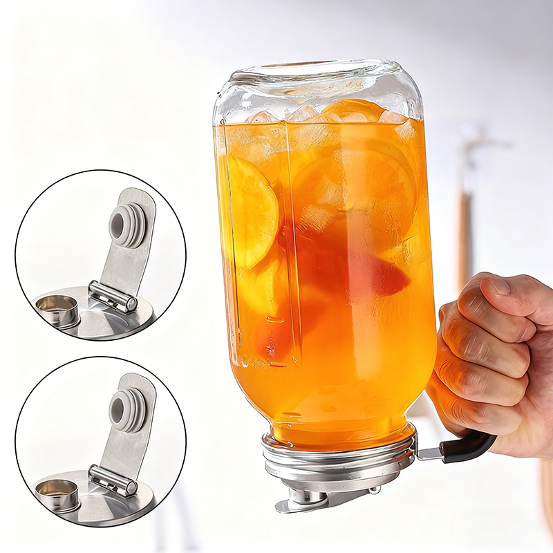 The lid features a precision-engineered pour spout that ensures smooth, drip-free pouring and a flip-top cap that seals tightly to maintain freshness and prevent leaks. An ergonomic handle integrated into the lid design provides a comfortable grip for easy pouring and carrying. Whether used in home kitchens, cafes, or restaurants, this lid adds both style and practicality to your favorite mason jars, making them ideal for daily use or special occasions.