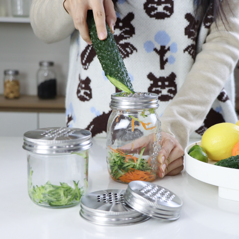 Crafted from food-grade 304 stainless steel, these grater lids resist corrosion, odors, and staining. The secure threading prevents slippage during use, and the integrated design allows direct collection into the jar below. The versatile grating sizes accommodate different texture preferences, from fine powders to coarse shreds, meeting various culinary requirements.