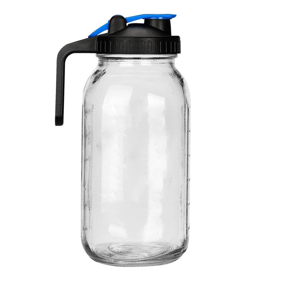 Transform your beverage service with our versatile 64oz Wide Mouth Mason Jar Coffee Pitcher, a perfect fusion of rustic charm and modern functionality. This generously sized glass pitcher features the classic wide mouth design, offering exceptional versatility for both hot and cold beverage applications. The innovative flip-top pour lid, crafted from BPA-free plastic, ensures a secure, leak-proof seal while providing effortless one-handed pouring capability – making it an indispensable tool for high-volume beverage stations.
